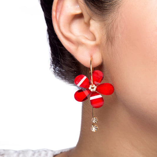 Earrings for Women and Girls | Fashion Red Hoop and Dangler Earring | Gold Plated Hoops | Floral Shaped Western Earrings | Birthday Gift for Girls and Women Anniversary Gift for Wife