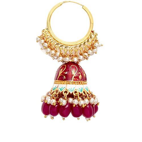 Meenakari Jhumka Earrings Handcrafted Gold toned Traditional Red Jhumka Hoop Earrings for Women and Girls (Red,Gold)