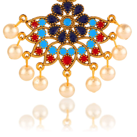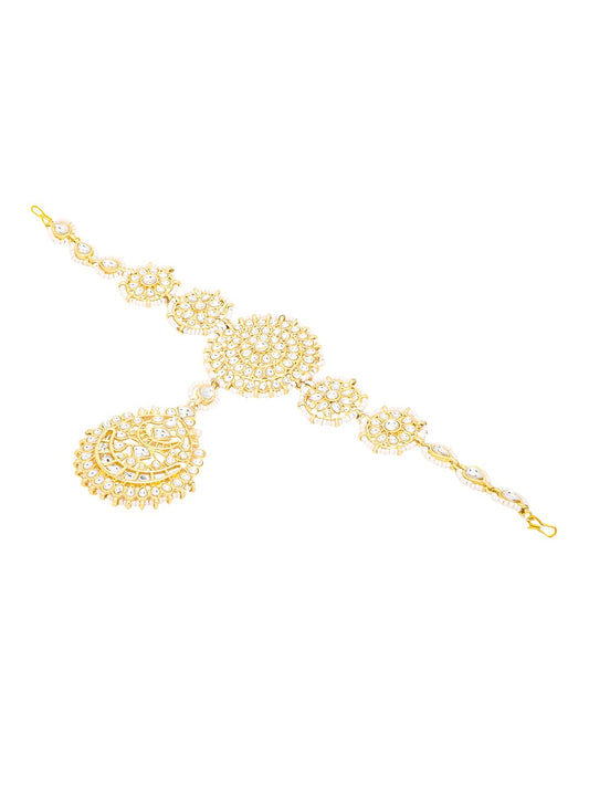 Mathapati for Women Gold Toned Kundan Studded Pearl Drop Chandbali Designed Head Chain/Mathapati for Women and Girls