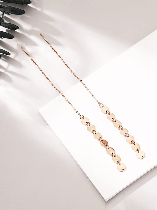 Threader Earrings for Women Western Rose Gold Plated Stainless Steel Long Chain Coin Threader Earrings For Women and Girls