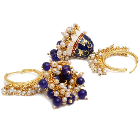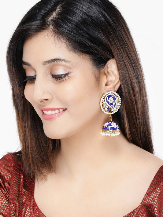 Meenakari Blue Jhumka Earrings Handcrafted Gold toned Traditional Moti Jhumka/Jhumki Earrings for Women & Girls