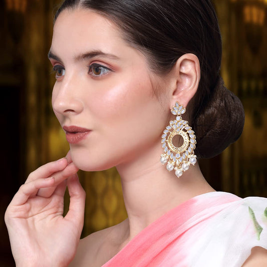 Chandbali Earrings for Women Gold Plated Kundan Studded Pearl Gilded 2 Layer Chand bali Earrings for Women and Girls.