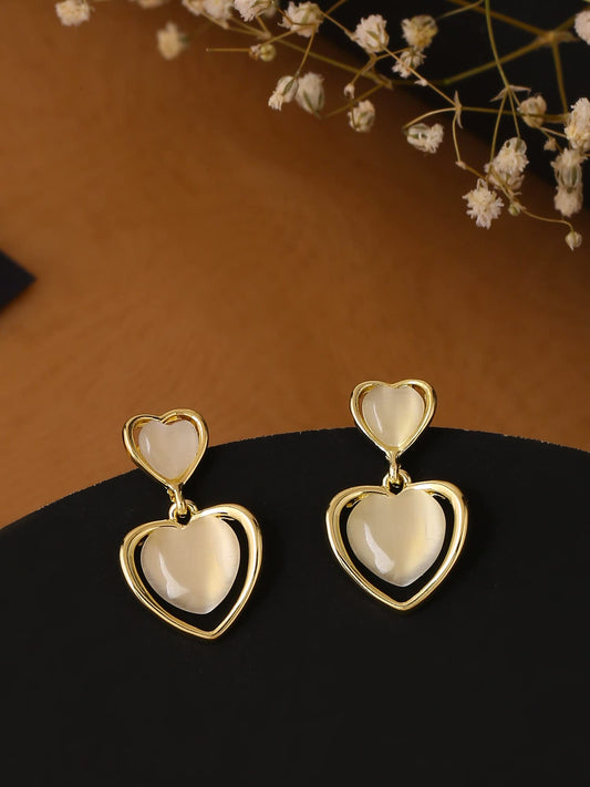Earrings for Women and Girls Golden Drop Earrings for Women | Valentine Special Gold Plated Opal Stone Love Heart Drop Earrings | Birthday Gift for girls and women Anniversary Gift for Wife