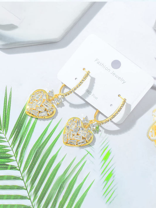 Earrings for Women with Crystal Studded Gold-toned Glamour Spark Heart Drop Earrings For Women & Girls