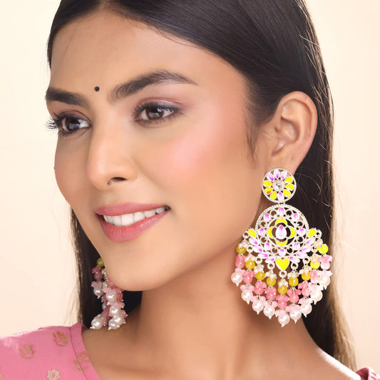 Earrings for Women and Girls Meenakari Chandbali | Gold Plated Yellow Pink Meenakari Chandbali Earrings | Birthday Gift for girls and women Anniversary Gift for Wife