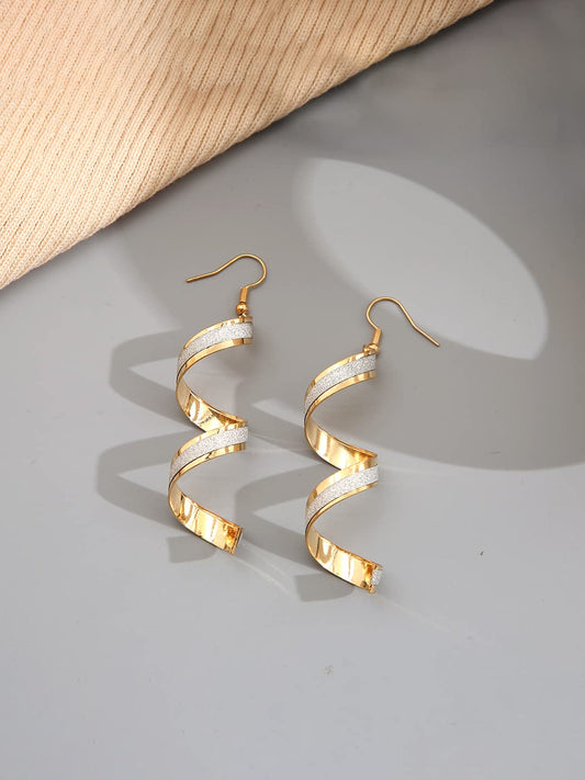 Dangler Earrings for Women Fashion Golden Long Danglers | Gold Plated Spiral Dangler Earrings For Girls | Birthday Gift for Girls Anniversary Gift for Wife