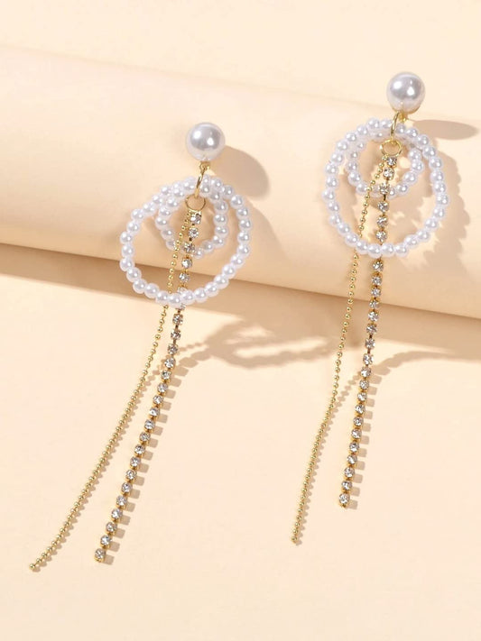 Earrings For Women Gold Tone Chain Pearl Beaded Layer Drop Dangle Earrings For Women and Girls