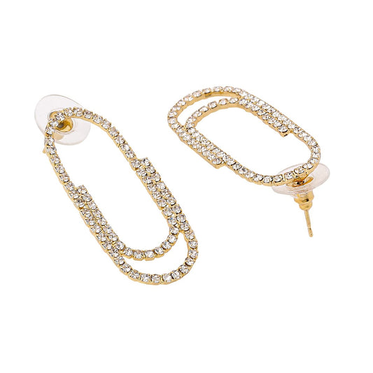 Earrings For Women Gold Tone Pin Shaped Sparkling Crystal Studded Drop Stud Earrings For Women and Girls