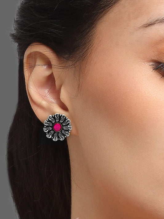 Oxidised Stud Earrings For Women Traditional Silver Oxidised Kolhapuri Stud Earrings For Women & Girls