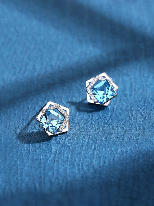 Earrings For Women White Color Clear Crystal Geometric Shape Stud Drop Earrings For Women and Girls