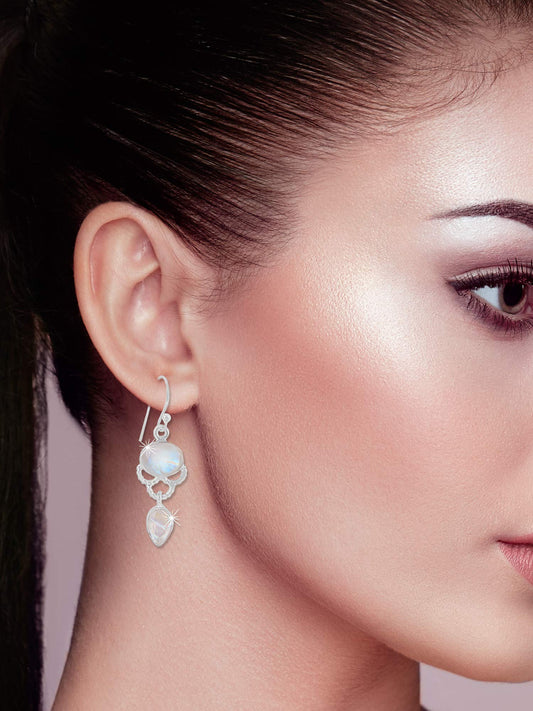 Gemstone Rainbow Moonstone 925 Sterling Silver Hallmark and Certified Purity Drop Earrings for Women and Girls