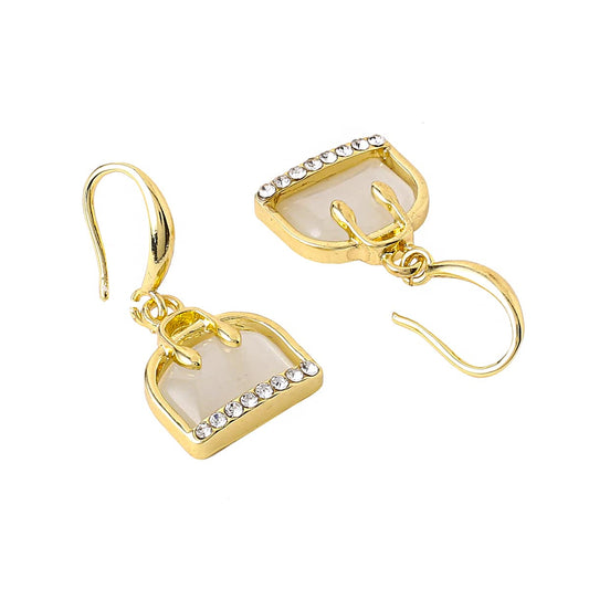 Earrings For Women Gold Toned Mini Handbag Designed Clear Crystal Drop Earrings For Women and Girls