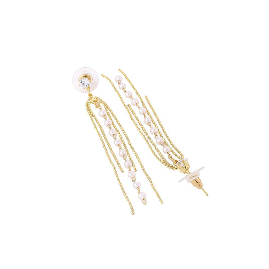 Earrings for Women and Girls Fashion White Pearl Dangler | Gold Plated Long Chain Hanging Pearl Dangler Earrings | Birthday Gift for Girls & Women Anniversary Gift for Wife
