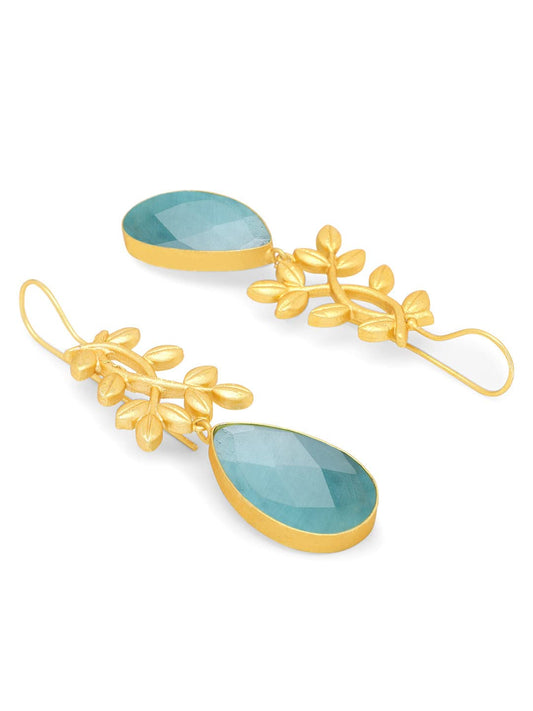 Earrings For Women Gold Tone Crystal Studded Green Color Leaflet Designed Drop Dangle Earrings For Women and Girls