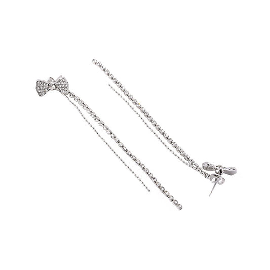 Earrings For Women Silver Tone Crystal Studded Bow Shape Back Drop Dangle Earrings For Women and Girls