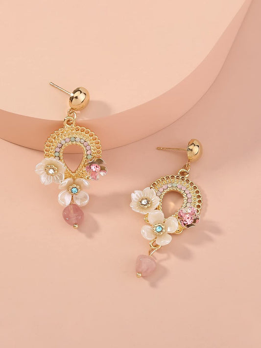 Earrings For Women Gold Tone Clip On Stud With Crystal Studded Oval Shape Multicolor Floral Designed Elegant Dangle Earrings For Women and Girls