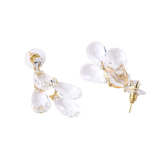Earrings For Women Gold Tone Clear Crystal Studded Teardrop Shape Dangle Drop Earrings For Women and Girls