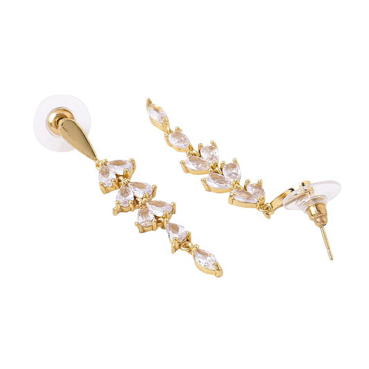 Earrings For Women Gold Toned Teardrop Shaped Sparkling Crystal Studded Dangler Earrings For Women and Girls