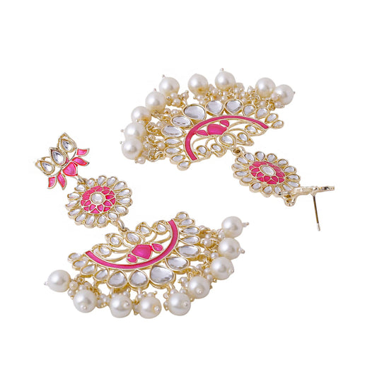 Earrings For Women Gold Toned Pearl Stud Back Drop Crystal Studded Drop Earrings For Women and Girls