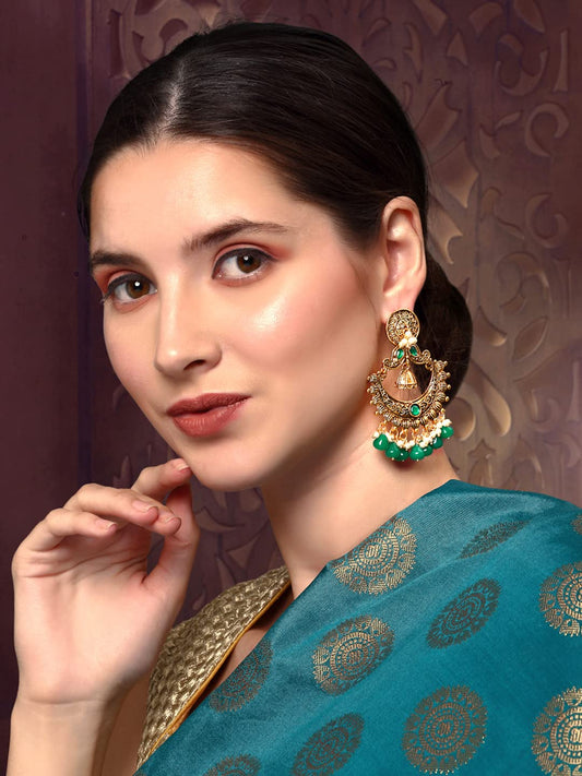 Earrings for Women and Girls Traditional Kundan Dangler Earrings | Gold Plated Green Long Dangler Earrings | Birthday Gift for girls and women Anniversary Gift for Wife