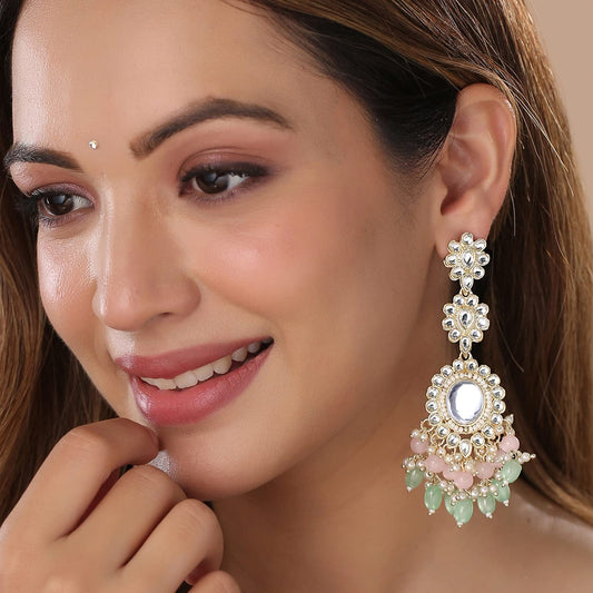 Earrings for Women and Girls Kundan Chandbali | Gold Plated Kundan Studded Beads Drop Chandbali Earrings | Birthday Gift for girls and women Anniversary Gift for Wife