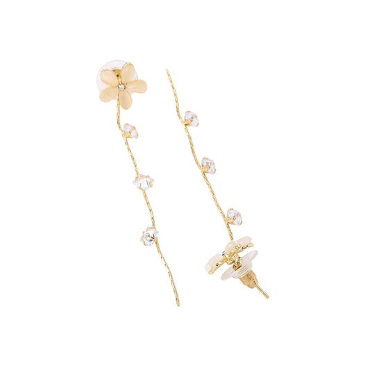 Earrings For Women Gold Tone Crystal Studded Flower Stud With Linear Chain Tassel Hanging Dangler Earrings For Women and Girls