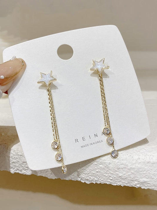 Earrings For Women Gold Toned Star Shaped Stud With Linear Chain Crystal Hanging Dangler Earrings For Women and Girls