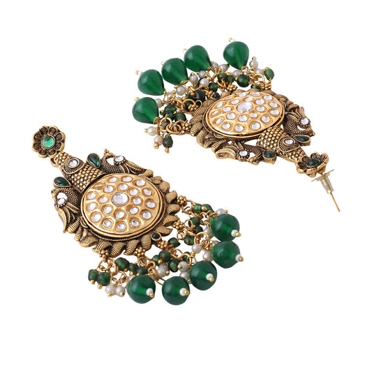 Earrings for Women and Girls Kundan Earrings | Green Danglers Earrings for Women Gold Plated Peacock Shaped Long Earrings | Birthday Gift for girls and women Anniversary Gift for Wife