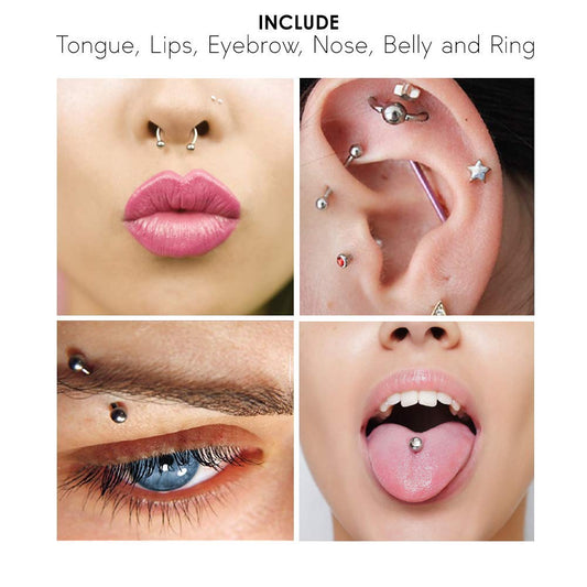 Body Jewellery for Women and Girls | Fashion Silver Piercing Ear Eyebrow Nose Lip Set | Silver Tone Body Jewelry Set | Western Stainless Steel Piercing Pin Combo | Accessories Jewellery for Women | Birthday Gift for Girls and Women