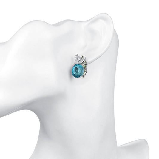 A5 Grade Blue Crystal Platinum Plated Swan Studs Earrings for Women & Girls