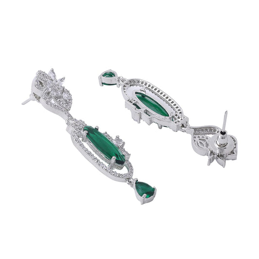 Earrings for Women and Girls American Diamond Drop | Silver Tone Green AD Stone Drop Earrings | Birthday Gift for girls and women Anniversary Gift for Wife