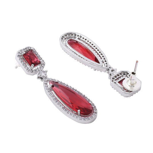 Earrings for Women and Girls American Diamond Drop | Silver Tone Red AD Stone Drop Earrings | Birthday Gift for girls and women Anniversary Gift for Wife