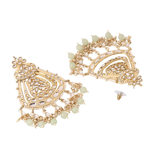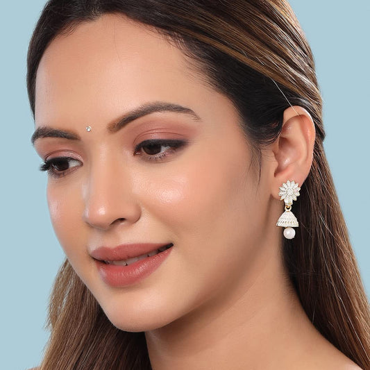 Earrings for Women and Girls Kundans Chandbali | Gold Plated Kundan Studded White Beads Drop Earrings | Birthday Gift for girls and women Anniversary Gift for Wife