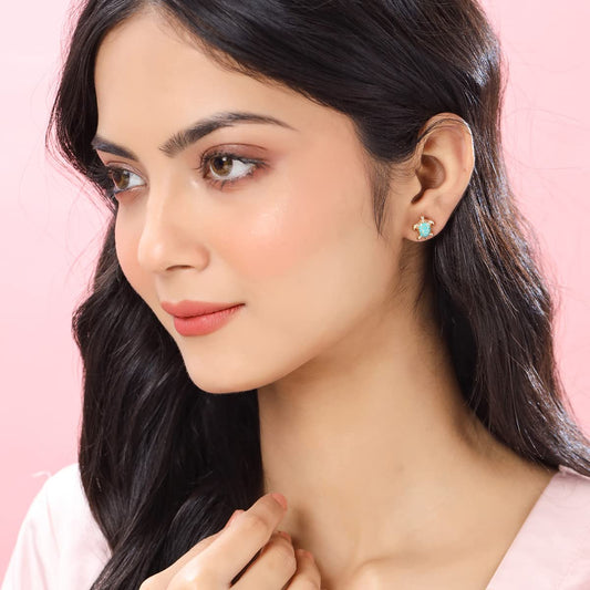 Crystal from Swarovski Stud Earrings in Macaroon Box for Women and Girls (Aquamarine)