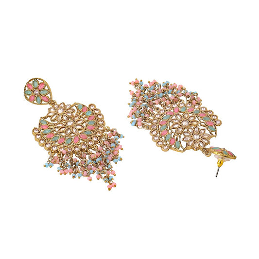Earrings for Women and Girls Kundans Chandbali | Gold Plated Kundan Studded Meenakari Touch Beads Drop Chandbali Earrings | Birthday Gift for girls and women Anniversary Gift for Wife