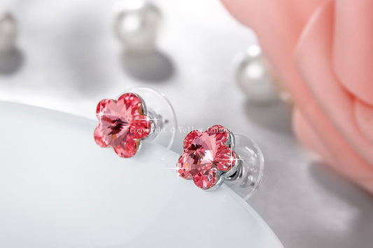 Crystals from Swarovski Platinum Plated Flower Crystal Earrings for Women and Girls (Light Rose)