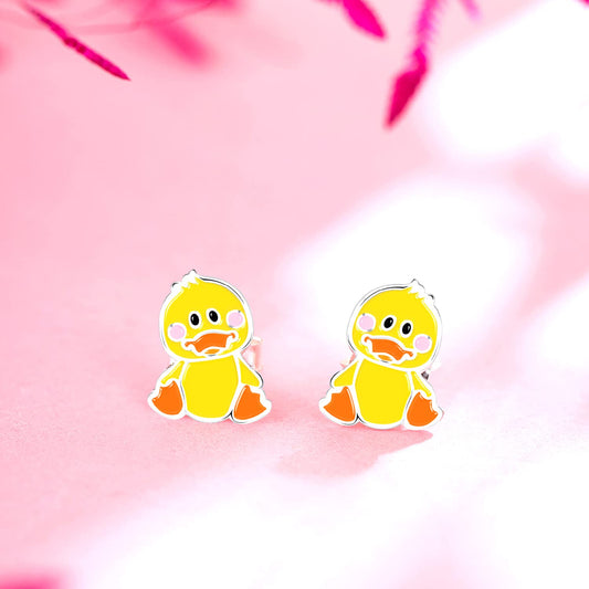 Raajsi by 925 Sterling Silver Stud Earring for Girls & Kids Melbees Kids Collection Duck Designed | Birthday Gift for Girls Kids | With Certificate of Authenticity & 6 Month Warranty