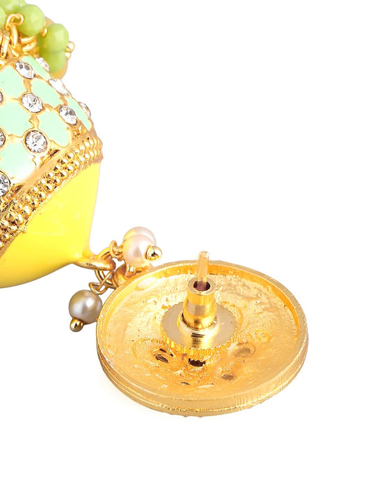 Traditional Gold Toned Yellow Floral Design Pearl Meenakari Jhumka Jhumki Earrings for Women and Girls, Medium (YCTJER-92MNKJHK-YL)