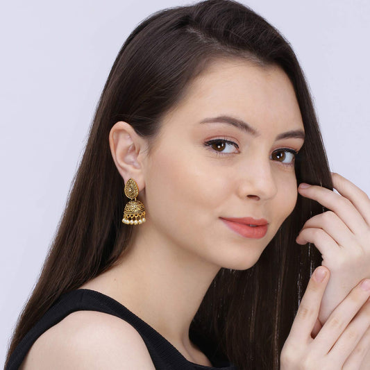 Traditional Jhumka/Jhumki Earrings Temple Jewellery Antique Oxidized Matte Gold Plated Pearl Earrings for Womens & Girls