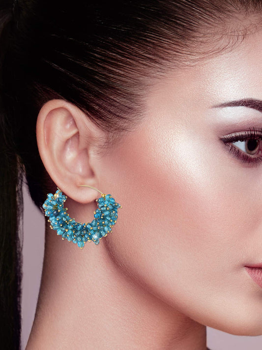 Blue Beads Traditional Hoops Earrings for Women and Girls