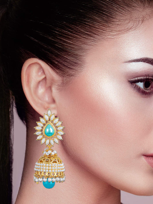 Bollywood Celebrity Party Wear Traditional Pearl Moti Jhumka/Jhumki Earrings for Women and Girls (Blue)