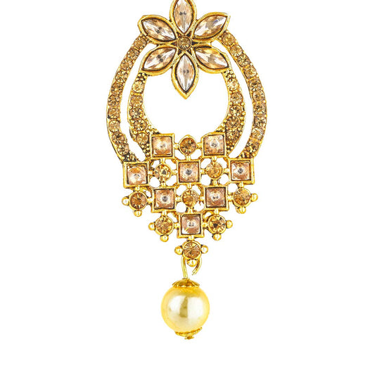 Ethnic Golden Kundan Studded Pearl Chand Bali Earrings for Women and Girls