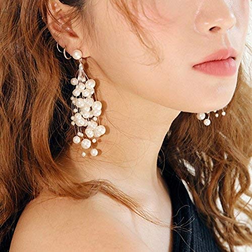 Pearl Beads Strings Long Tassel Dangler Earrings for Women and Girls