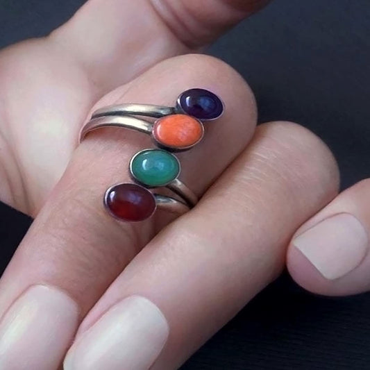 Earrings For Women Silver Toned Multicolor Stone Studded Ring For Women and Girls