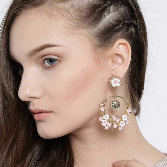 Floral Design Pink Chandelier Dangle Drop Earrings for Women and Girls