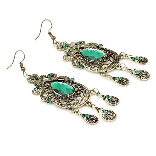 Designer Ethnic Green Crystal Oxidized Gold Plated Chandbali Dangle Earrings For Women and Girls