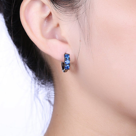 A5 Grade Blue Crystal Black Gun Plated Clip On Earrings for Women & Girls