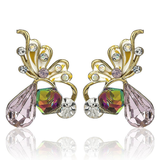 Moxie Collection Butterfly Multi-color Crystal Stud Earrings For Women & Girls (Pink)