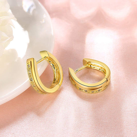 Studded Golden Hoops Alloy Crystal Earring for Women & Girls