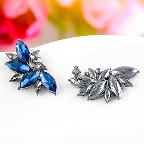 Silver Plated Blue Crystal Jacket Earrings for Women and Girls